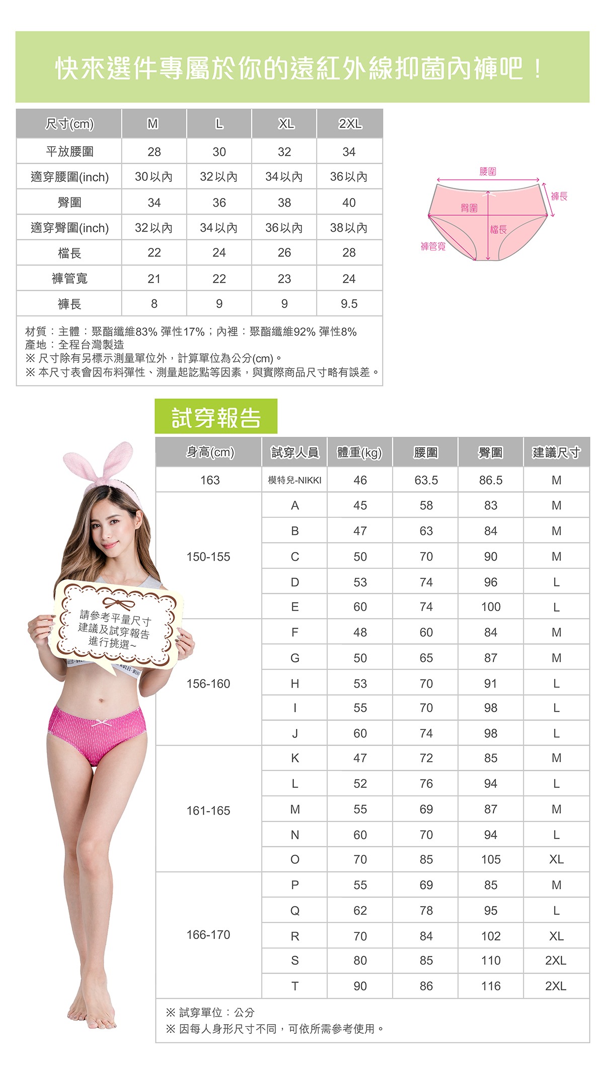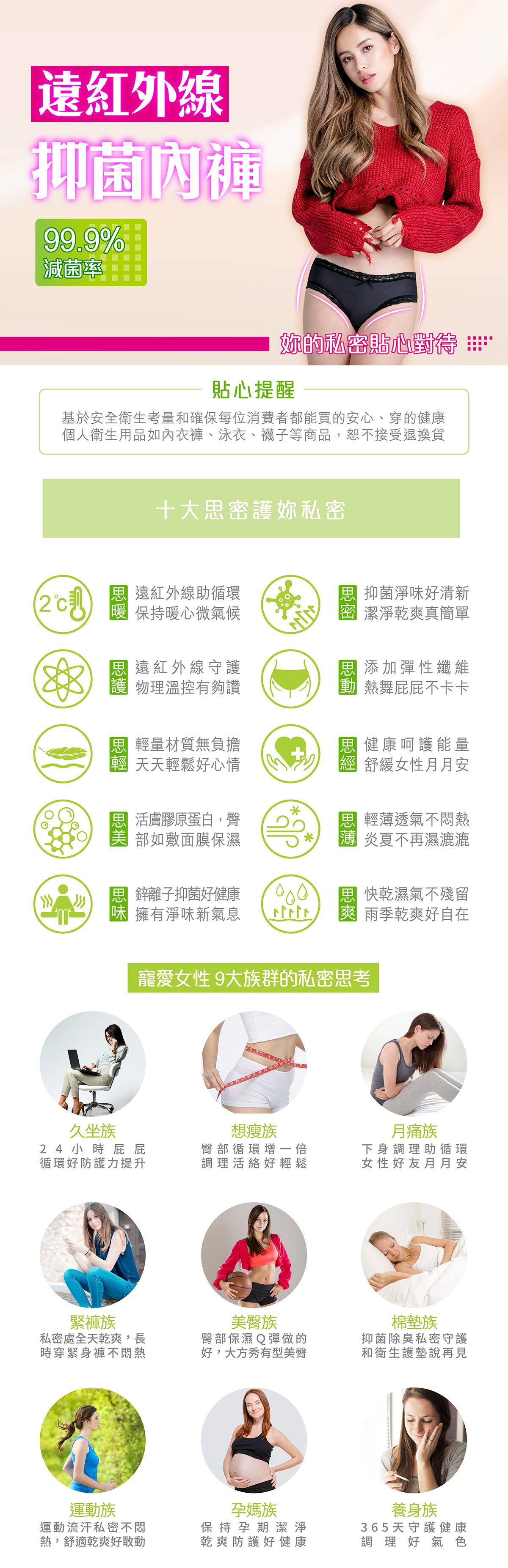 網點思密遠紅外線抗菌中腰內褲(戀愛粉)